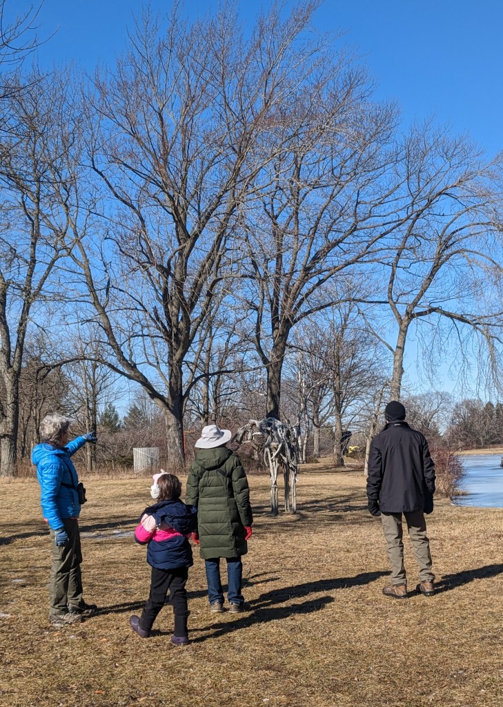 Ten of us met on the Lynden Sculpture Garden patio to admire the beautiful American Elm before setting off around the perimeter. There wasn’t much snow on the ground though some of the paths were icy. There weren’t many birds either. We spotted 15 species: some woodpeckers chasing each other around, numerous finches and chickadees as well as a few cardinals. A bunch of crows were upset about something we couldn’t saw.