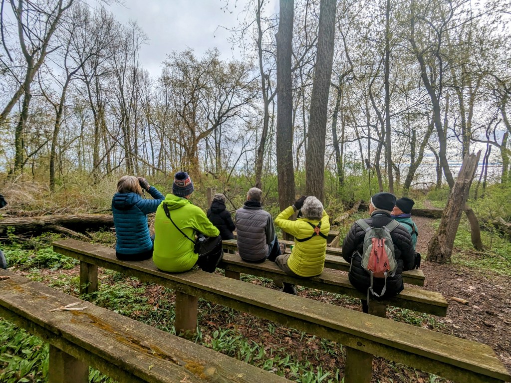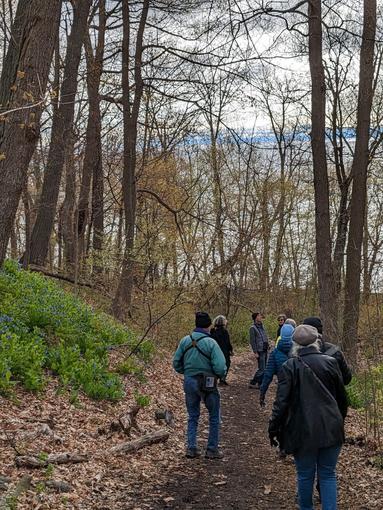 Our final and rainiest stop was at Donges Bay Gorge. There is a gorgeous trail, Wendy’s Way, that winds around the east side of the ravine. Large white pines are spread over the buckthorn-free woods. The prior owners worked to protect the land from invasives and maintain the wildflowers. Truly a beautiful site. While Pileated Woodpeckers and Louisiana Waterthrush have been seen, it wasn’t our day for those.