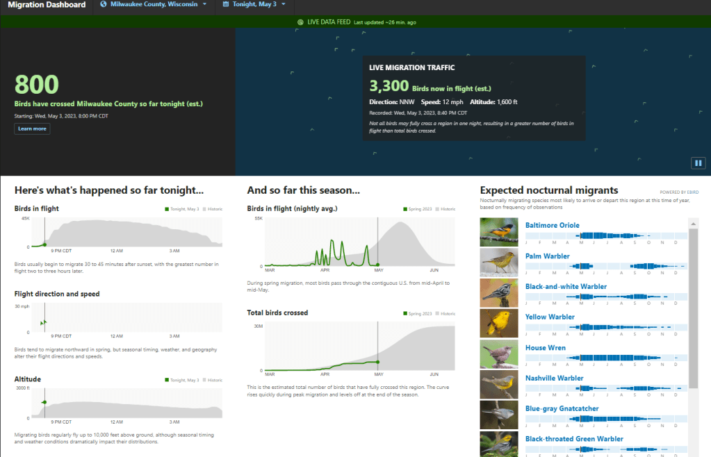 Use Birdcast forecast maps for a sense of whether there are good migration conditions and for even more fun local Migration Dashboard to see how many birds are flying over at night and which species.