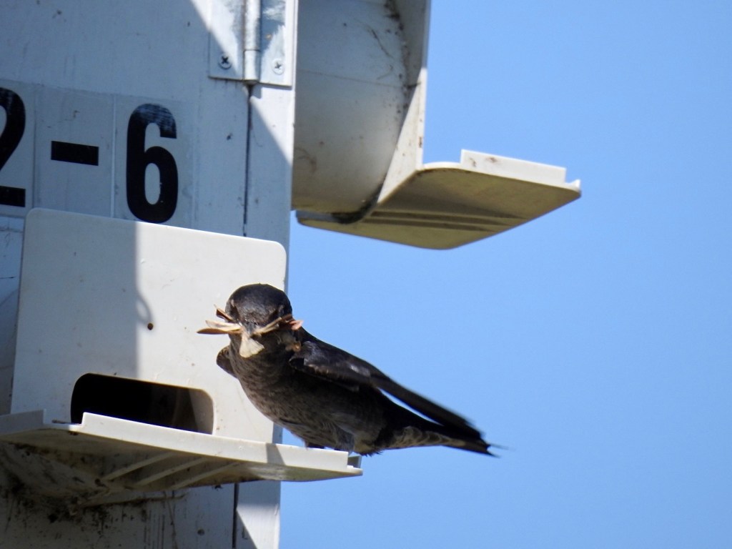 We stopped at the Marsh Haven parking lot hoping to see Yellow-Headed Blackbirds at the feeder. Like the Limpkin, the Blackbirds were not hanging around. However, there were Purple Martins. Lots of them!