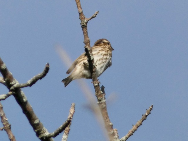 Last week’s walk at the Magic Hedge and into Lake Park started slowly. Heard a Red-Bellied from across Lincoln Memorial Drive yet very little action in the shrubs bordering Linwood Water Treatment Plant. Soon a Merlin flying along the north side of the hedge explained some of the quiet. And a bit later, two interacting Cooper’s Hawks closer to the lake explained the rest. It was quiet. We headed up into Lake Park. It was immediately birdier. Finches, sparrows and kinglets were all around. We had nice looks at the Purple Finch pictured below.