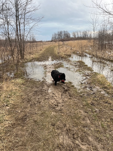 Meet in the north parking lot (click link for pin). This lot is dirt when dry and mud when wet. Be prepared. The trails will be muddy too. It’s a big boot day!