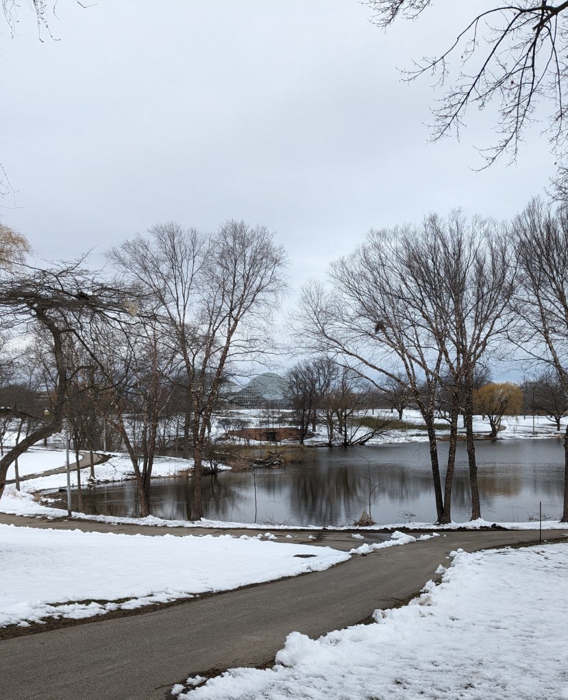 The cold and wind were both present. As we walked around the east side of the Domes we saw two Cooper’s Hawks. We did not see a nest but hoping there is one there. We had a nice walk around the pond where five Red-breasted Mergansers paddled, along the base of a sledding hill to the songs of Cardinals, around the playground and headed back towards the parking lot. On that last leg of the walk we noticed two hunkered down Kildeer in the flooded field just below the south parking lot. Just as Lisa said, “It’s almost like they’re low as if a hawk was around,” a Cooper’s Hawk flew over. The day ended with us huddled near the building to review the list. Warm birding days have to be here soon!