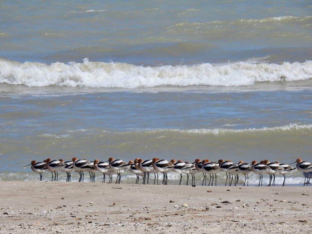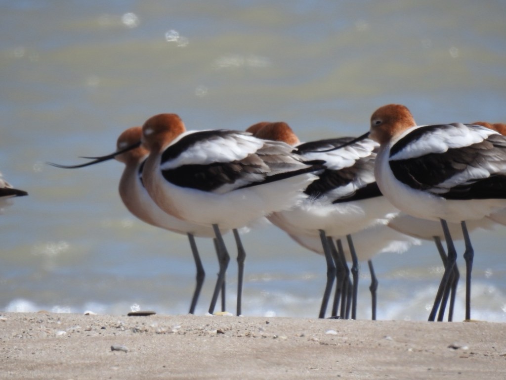The beach is worth checking as the Wednesday flock of American Avocets was first seen there. Helen caught the pictures below when they landed at Bradford Beach.