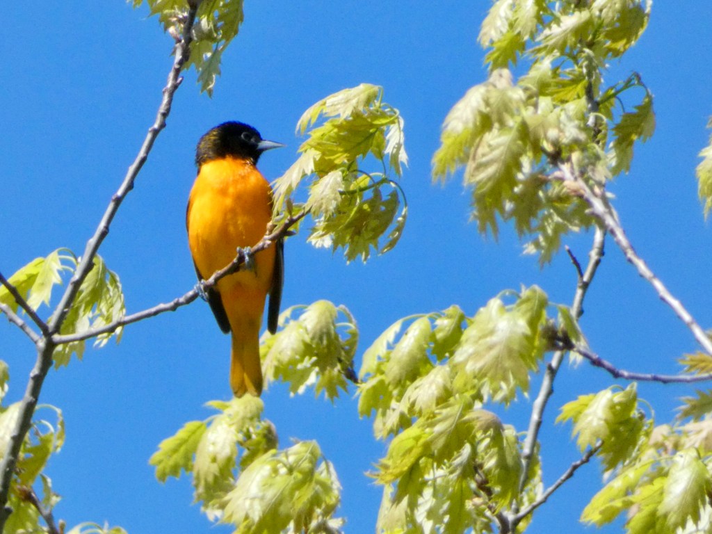 We took a great walk around Warnimont Park. We had to skip the Oak Creek Outlet as the gate to the beach was closed and locked. Right out of the Kelly Senior Center parking lot we had Blue-Headed Vireo, Black-capped Chickadees and a the first of many warblers. Warblers heard and spotted included: Golden-winged, Northern Waterthrush, Blue-winged, Black-and-White, Nashville, Northern Parula and Magnolia. We also saw a Great-Crested Flycatcher, catbirds, thrasher, Baltimore Orioles and more. We thought we got eyes on a Blue Grosbeak, but further study revealed it to be one of a few Indigo Buntings we saw that morning. The weather was beautiful! No complaints about a morning of May birding