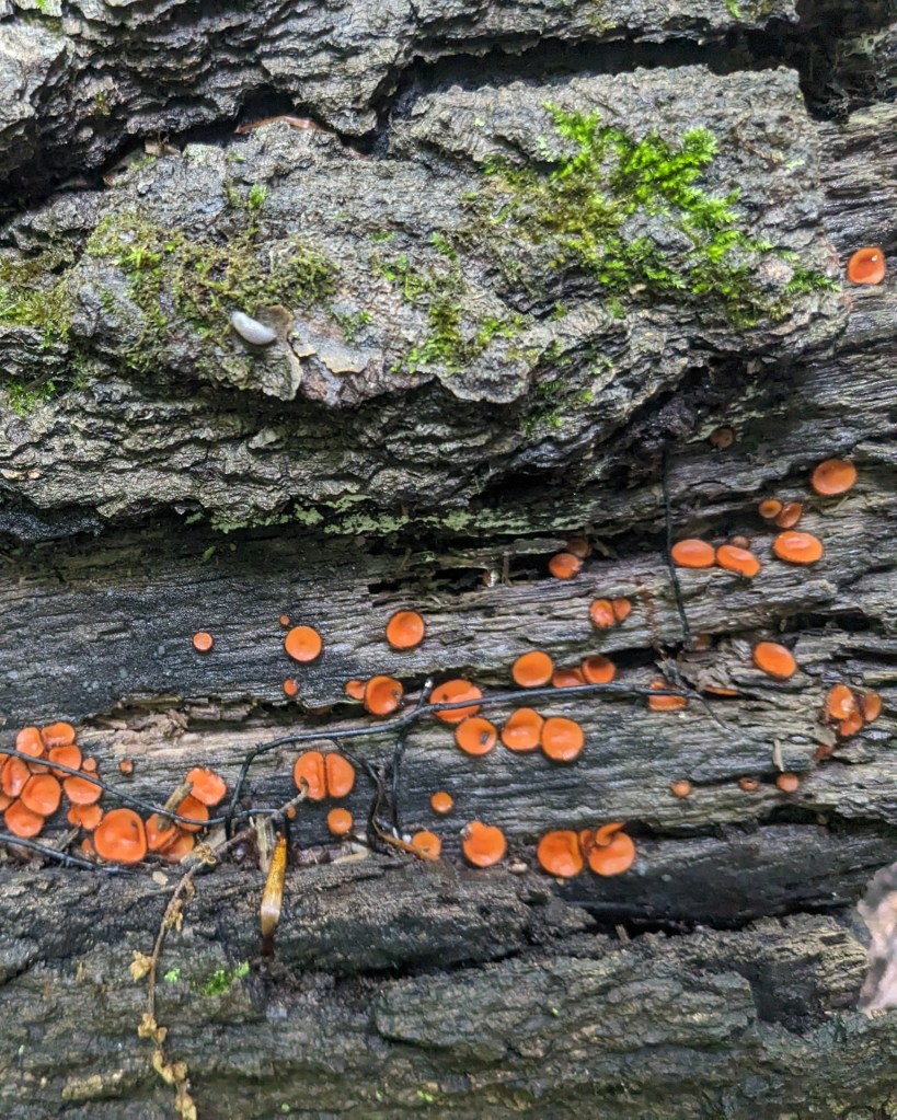 It was supposed to be a quick walk on a barely one-mile trail through Cudahy Woods and then onto Wilson Park. We never made it to Wilson. It turned into a 2.5 hour muddy birding, tree-ing, flower-ing, and fungi-ing hike. This is a wonderful place with huge old trees and an understory filed with dogwoods, wood anemone and poison ivy. It’s beautiful.