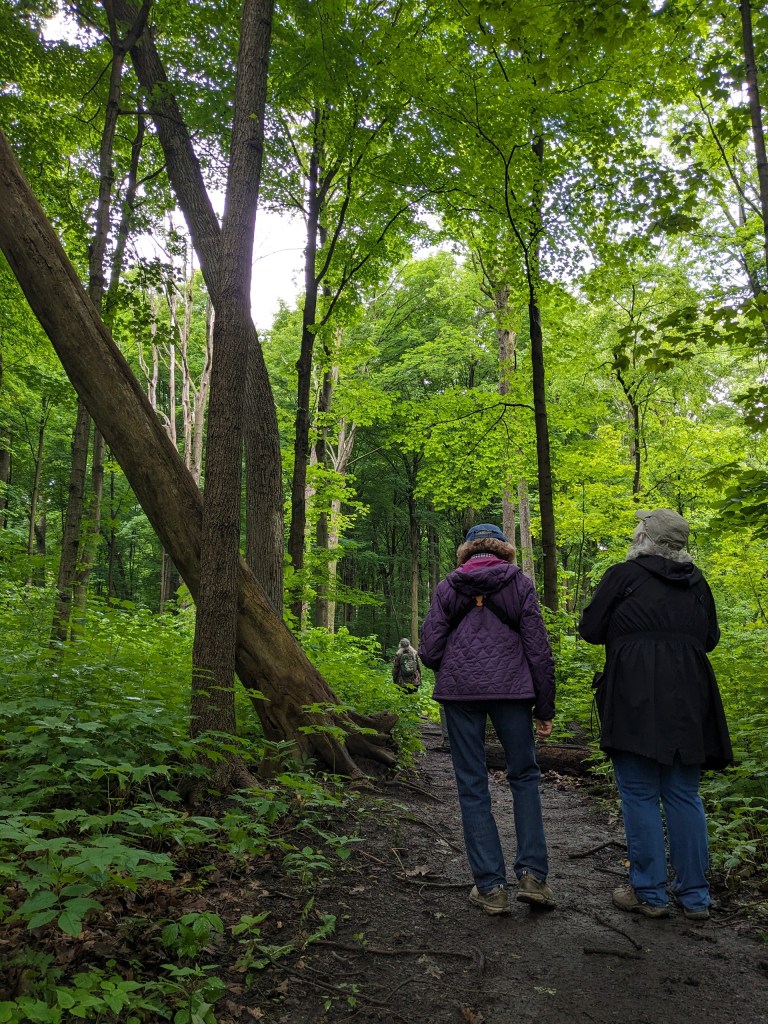 The birds were heard more than they were seen. The Acadian Flycatcher was very vocal, treating us to it’s call for half of our time there. Also heard and sadly not seen was a Scarlet Tanager. Among the spotted birds were Red-headed and Red-bellied Woodpeckers, Chickadees, White-breasted Nuthatches, and a Great-crested Flycatcher. As we were nearly out of the park, a Ruby-throated hummingbird buzzed above us and settled on her nest. Such a treat!