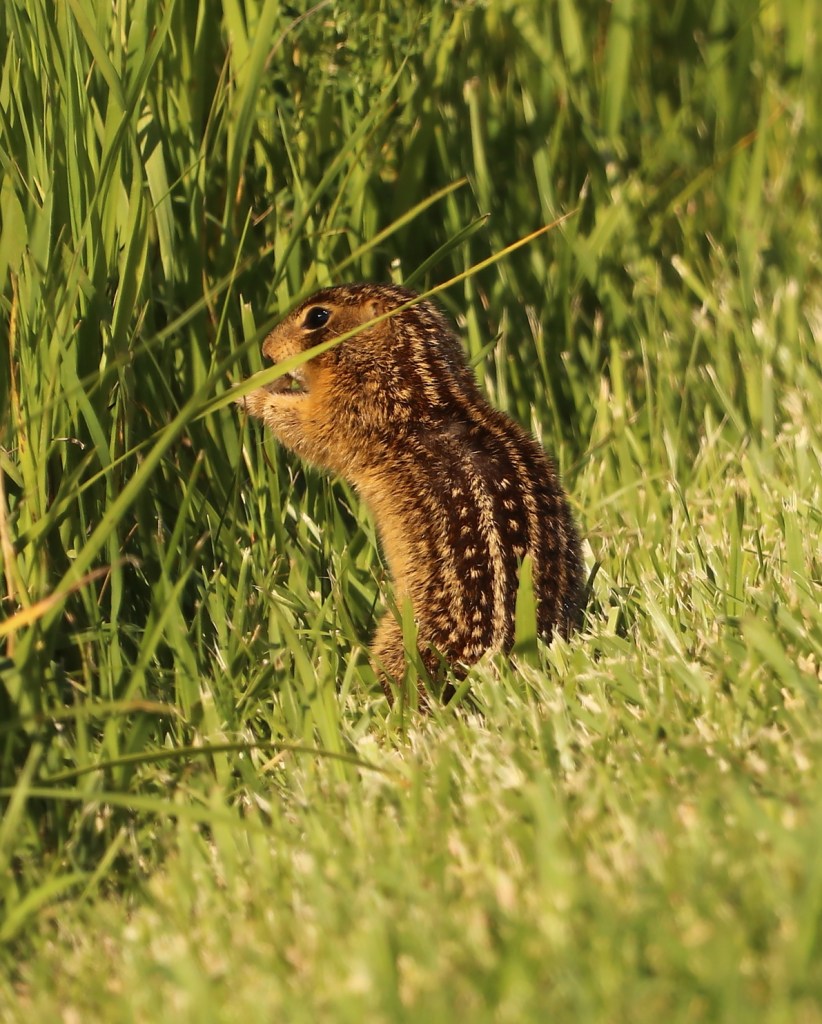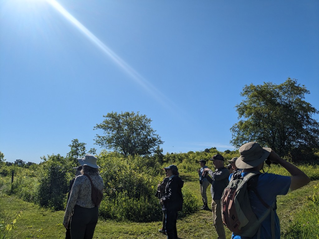 Beautiful blue skies, a gentle breeze and the sweet song of a Field Sparrow started our walk at Retzer Nature Center on June 9. The ten of us agreed to go straight to the Bobolinks. As we went up the south hill trail we could hear the fabulous R2D2 sounds. At the vista overlook we could see male and female Bobolinks flying about. We also spied Turkey Vultures, Wild Turkeys, a Sandhill Crane, Savannah Sparrow, Kingbirds and a few Thirteen-lined Ground Squirrels. We headed down the west side and wound through the woods, walked along Retzer Creek coming back to the parking lot from the pond. Their prairie flowers are ahead of ours with coneflowers blooming already.