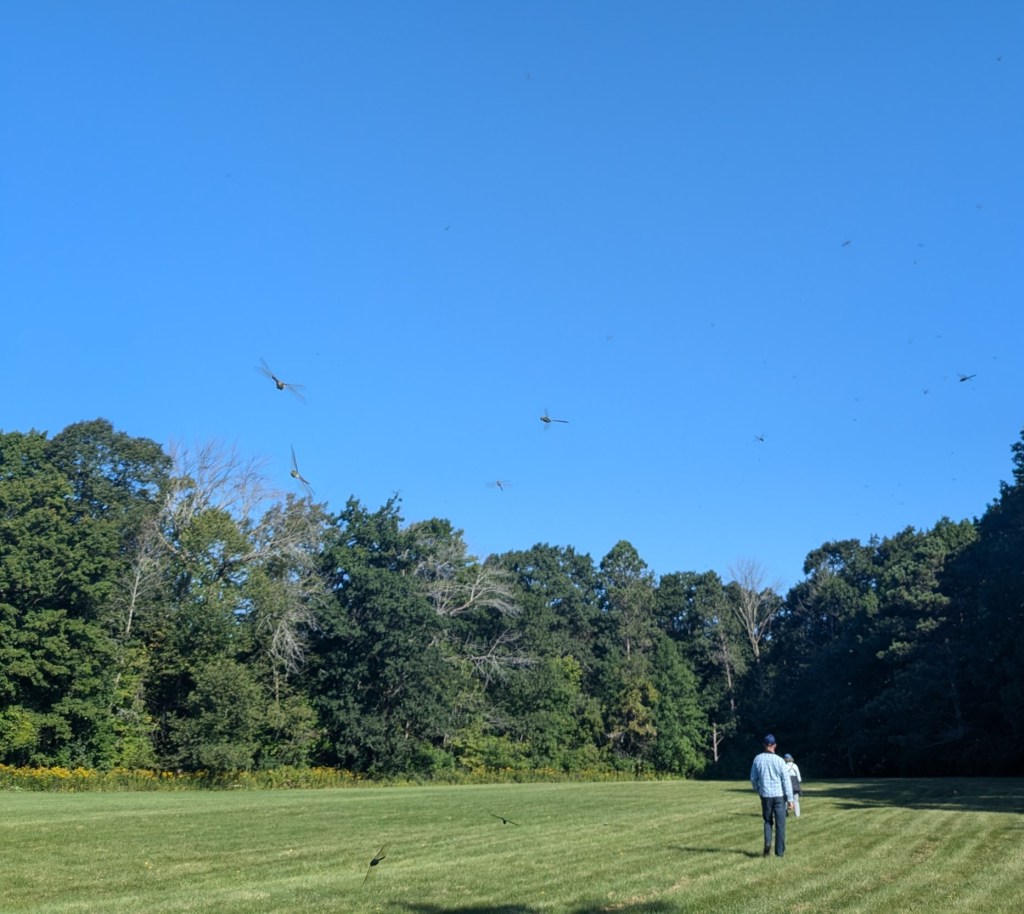The lake was very rough, not even gulls bobbing out there. In the upper field we were surrounded by a thousand dragonflies. It was really incredible!