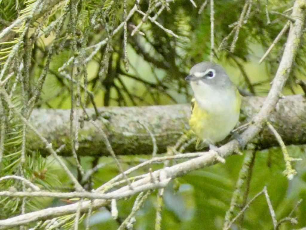 Shorewood Nature Preserve was QUIET. Where were the birds? As we were heading back up the bluff a Cooper’s Hawk was spotted. May explain our lack of birds. We headed to Lake Park south ravine to see if we could find the Yellow-billed Cuckoo seen on Saturday. No luck with that. A birder, John, was walking his cute little dog and telling us about all the warblers at the waterfall the day before when he spotted a Blue-headed Vireo fly from the waterfall area over to the evergreens on the golf course. We all had great looks and Jeff got a great picture.