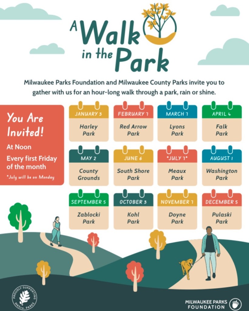 A Walk in the Park Join Milwaukee County Parks Foundation on the first Fridays for a walk in a park.