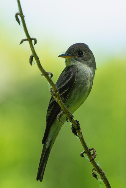 From Katie: Four, not-yet-sweaty birders met Sunday at Retzer Nature Center for a birdy walk around the prairie and wetland. Before leaving the parking lot, we had a juvenile Great Horned Owl with some pesky Crows, and a Cedar Waxwing giving chase. We had a nice breeze, not keeping us cool, but keeping the bugs away. We decided to walk the prairie first and then move on to some shade.