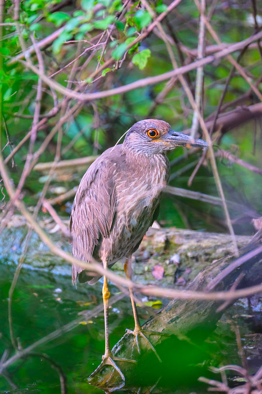Yellow-crowned Night Herons making waves. Spotted at Estabrook Park and Schlitz Audubon these birds have been lifers for many. The immature ones can be easily mistaken for Black-crowned Night Herons. Learn more about telling the two species apart “Birdist Rule #115: Learn to Identify and Differentiate Night-Herons”. Several Black-crowned Night Herons are seen every summer here in Milwaukee, but at the Lincoln Park Zoo in Chicago there is a colony of over 700 birds. If you see a banded Black-crowned Night Heron it may have come from the Lincoln Park Zoo colony. Check out the two photos of a Black-crowned Night Heron seen in August 2020 and a Yellow-crowned Night Heron seen in June 2025 from Andy Dressel of Signs of Life at Estabrook Park