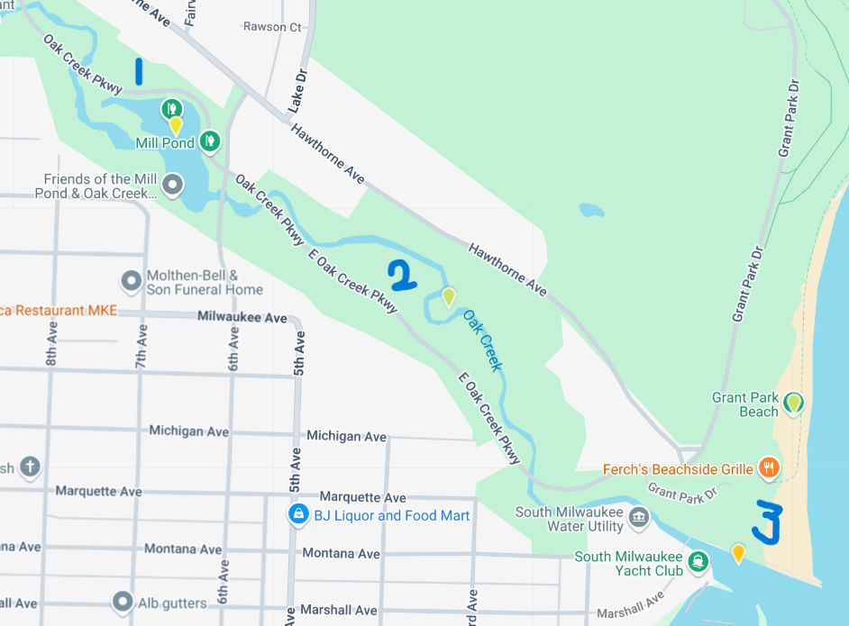 Start at Mill Pond parking along the Oak Creek Parkway before moving to Parkway Trail and then to the Outlet
