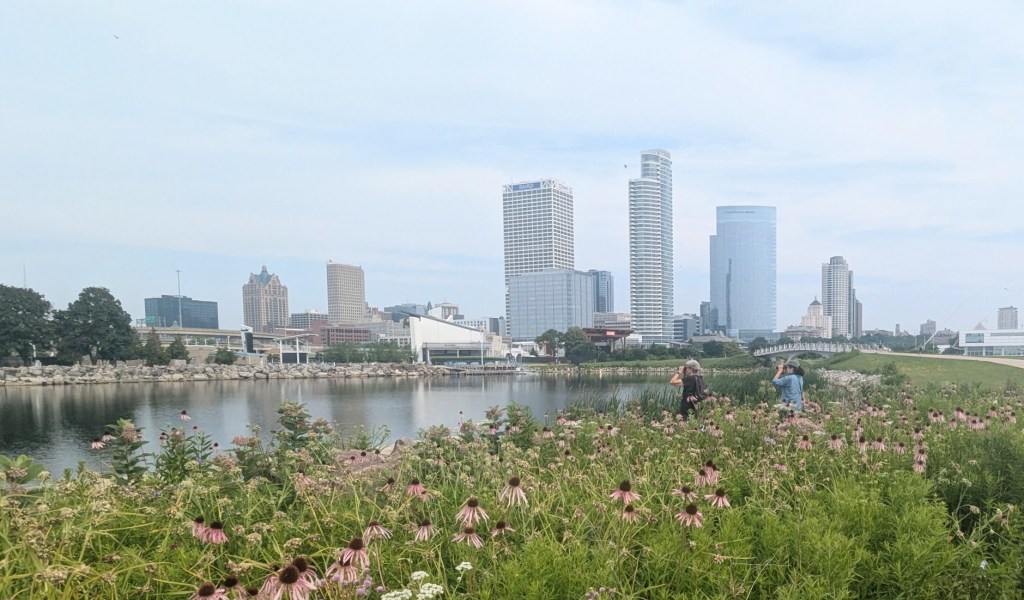 After hosting Dragon Boat Races on Sunday, having BBQ fest at Summerfest grounds and all the traffic from Harley-Davidson Homecoming, Lakeshore State Park was still being cleaned up and not very birdy. Only 20 species today with 10 birders. Plenty of Tree Swallows were flying over the park. Over the lake were large numbers of Herring and Ring-billed Gulls. Two exciting species were a pair of Spotted Sandpipers flying along the lake edge and a Caspian Tern that Lisa willed into being. Despite the lack of bird traffic, it was a beautiful day in the park with the prairie grasses and blooming flowers.