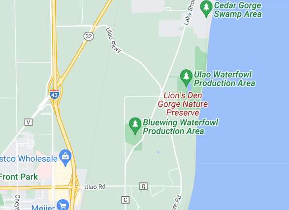 Park Map: https://www.ozaukeecounty.gov/DocumentCenter/View/11617/Lions-Den-Gorge-Nature-Preserve-Mapp
