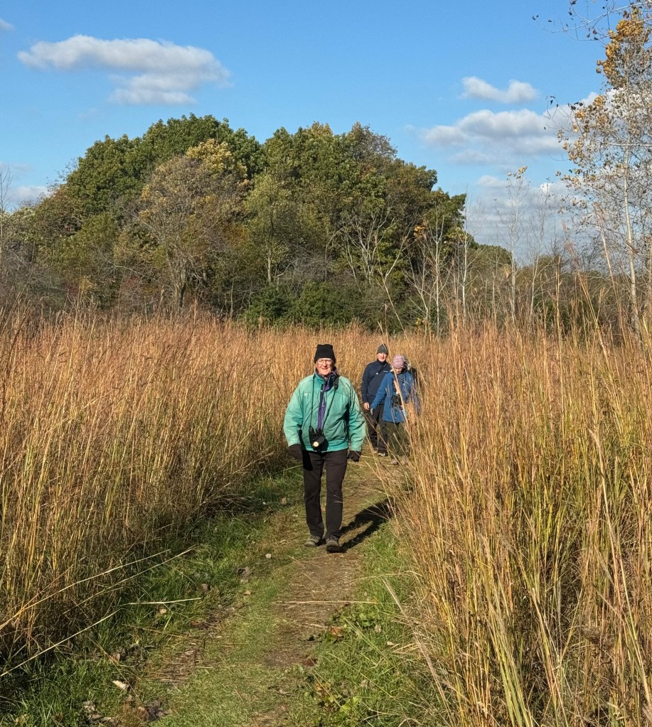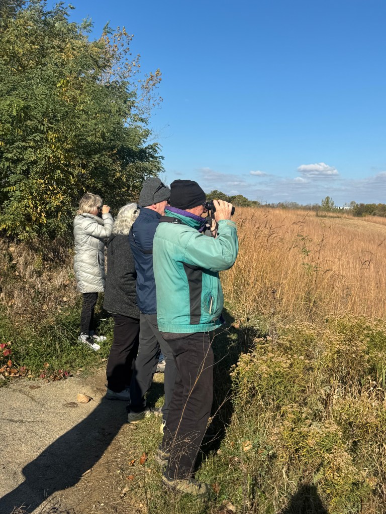 Bender Park from marina to prairie. Nine birders set out on a beautiful fall morning! Highlights were Horned Grebe spotted through a scope and a Rusty Blackbird near Fitzsimmons Rd. Thanks to John for meeting the group and leading a path through Bender!