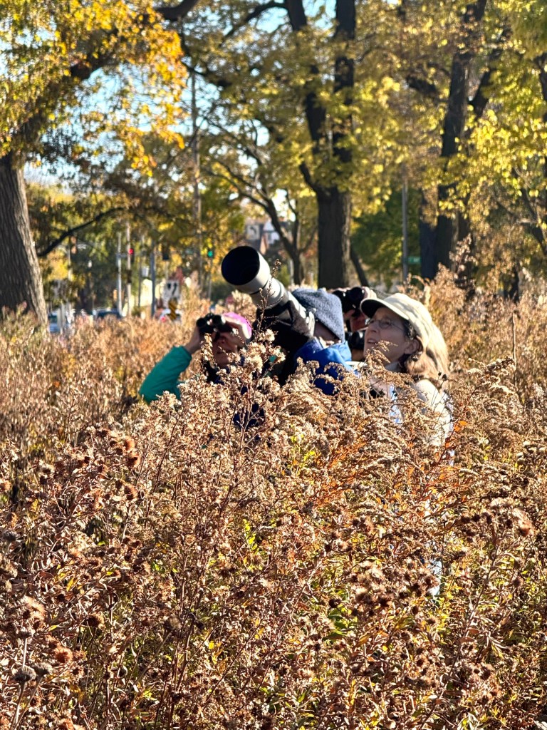 Sixteen birders came out for a beautiful morning at Washington Park. We walked from the parking lot up the hill towards the bandshell. From there we went down the west side into the native plant and ephemeral pond area coming out at the prairie planting across the road where we had good looks at a Brown Creeper, White-throated Sparrow, a Yellow-Rumped Warbler and European Starlings. Along the southside of the lagoon, we saw a Great Blue Heron and a Cooper’s Hawk spotting. A number of Dark-eyed Juncos, Canadian Geese, Mallards and a startled Wilson’s Snipe were seen on or near the lagoon.
