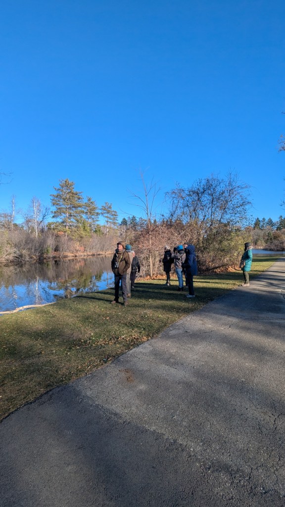 Nine birders were present at Greenfield Park on Sunday morning. We found 23 species as we walked north through the woods, along the big pond, and little ponds. We ended with a walk around the prairie islands in the west field and around the conifer stands. Highlights included a Great Blue Heron, Great Horned Owl, a Red-tailed Hawk, and like last week, we ended with a Bald Eagle flyover. It was Milwaukee Birder’s first time at Greenfield Park. Highly recommend! Nice big stand of mature trees with paths, open areas, ponds, and extensive shrubby borders.