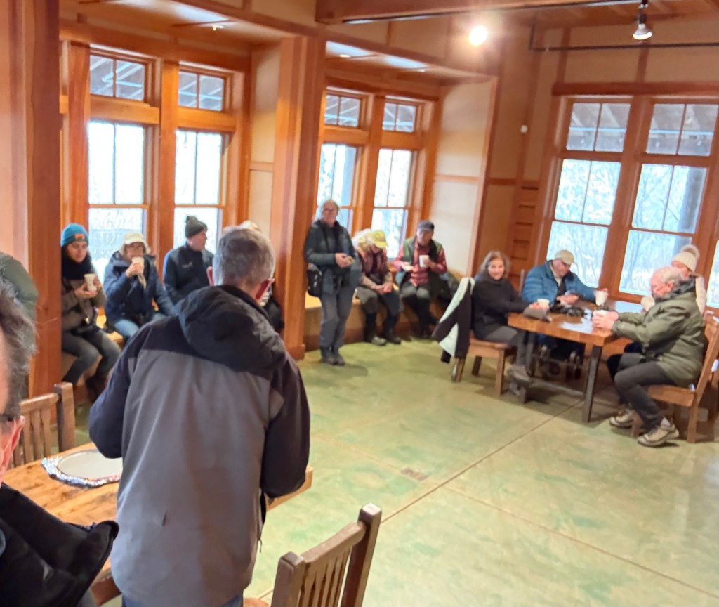 A bunch of us set out Sunday morning at Schlitz Audubon Nature Center hoping to see a Red-breasted Nuthatch or a Pileated Woodpecker. A Kildeer called and a Cooper’s Hawk flew over before we left the parking lot. Taking the Green Tree Trail and heading to Mystery Pond, we heard and saw Black-capped Chickadees, Golden-crowned Kinglets as well as Downy and Hairy Woodpeckers. Mystery Pond was pretty still, even Carl’s pishing didn’t pull out many birds. A Winter Wren was spotted just east of Turtle Pond.