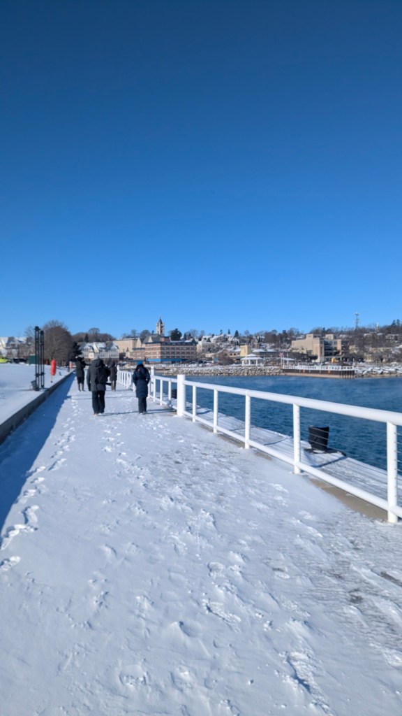 The wind was very cold at Coal Dock Park last week. There several Mallards in the Power Plant outlet. From the Bird Sanctuary NE corner, we saw an odd assortment of ducks. Turns out they were a string of decoys! From the viewing platform in Coal Dock, we saw American Tree Sparrows and heard an American Pipit. In the impoundment and marina area were some Buffleheads, Red-breasted Mergansers, several Common Mergansers, a few Ruddy Ducks, a couple Lesser Scaup, and a Double-crested Cormorant. A Northern Harrier flew over before we drove over to the north end of the marina. From the parking lot adjacent to the breakwater we saw a few more ducks and among the Mallards were two American Black Ducks. Past few weeks, Stephanie has spotted a Bald Eagle at the end of our walks. This week no Bald Eagle, instead Alex saw a Turkey Vulture flying high over the point.