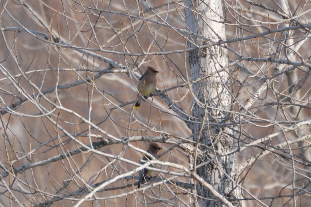 Saturday Havenwoods State Forest Walk: We were lucky to have a beautiful day at Havenwoods with birders. We walked west from the building along the evergreens. In this area we saw several Eastern Bluebirds, heard a Carolina Wren and some of us saw a Hermit Thrush. We headed around Lincoln Creek and the grassy hill spotting a perched hawk in the distance. Coming southeast along the railroad tracks, we saw numerous American Robins, European Starlings, and Cedar Waxwings. Heading north on the Green Trail after crossing the bridge back towards the building. By the end fifteen birders found 26 species